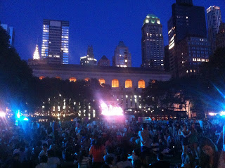 Tropfest was a terrific evening - the Best of Australian Tropfest films were amazing and the US films were a wide variety ranging from documentary's, dramas, cartoons, and straight narratives. Hugh Jackman hosted and the panel of judges were Rose Byrne, Jennifer Westfeldt, Judah Friedlander, producer Ted Hope and Film Society of Lincoln Center’s Scott Foundation. Bryant Park was packed to the brim!