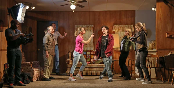 The sound design also featured some sophisticated practical elements. The climax of the play is videotaped by the reality TV producers film crew and then viewed in a following scene. Every night of Good Television, the climax was digitally captured and then played through laptop in the following scene. I was able to program the show so the board operator never had to leave Q-Lab to achieve this effect and we had a 100% success rate in firing the cue through the duration of the run.